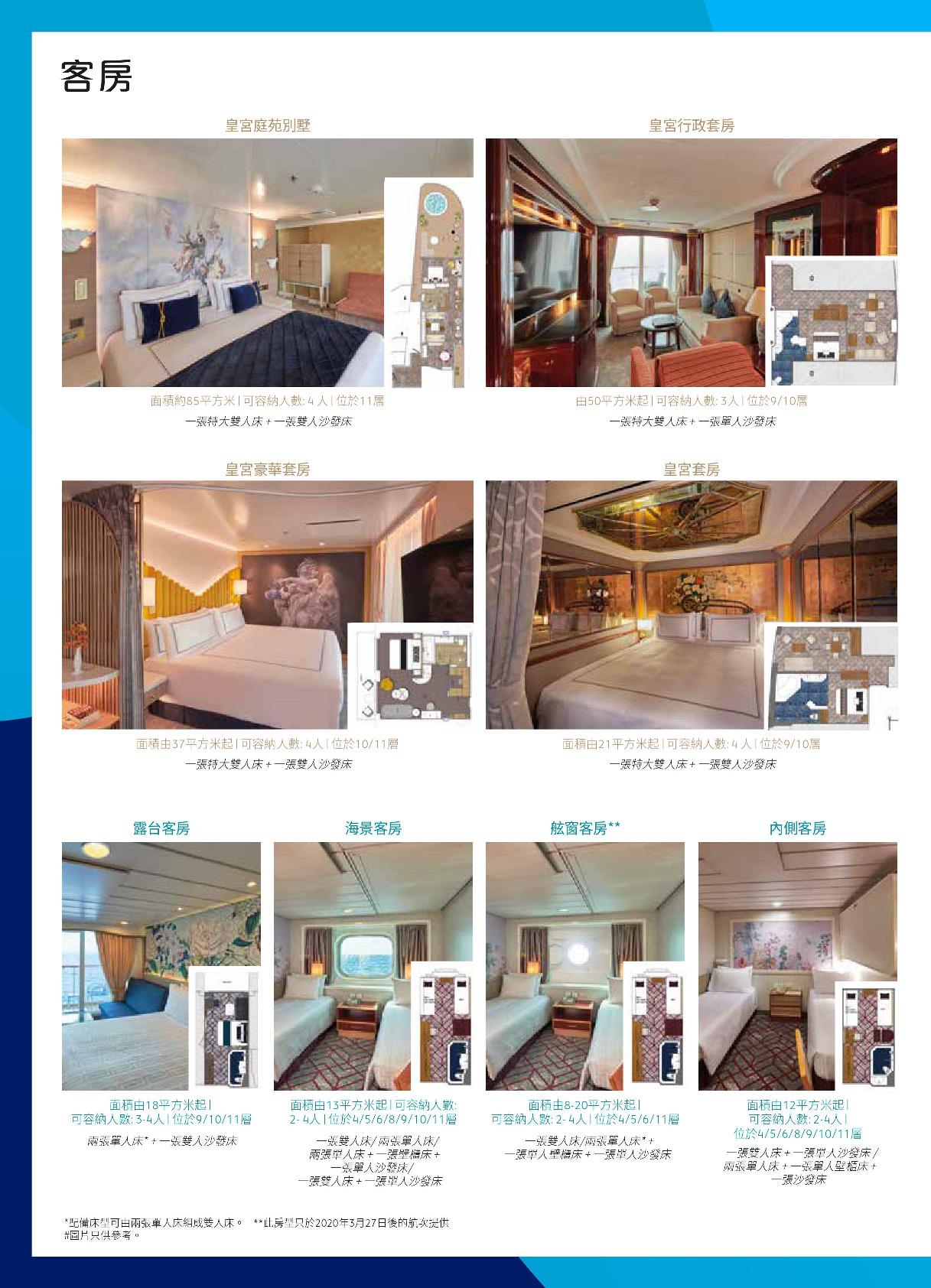 ■以上艙房價格表僅供參考,若有變動,以星夢郵輪公司公告為主,恕不另行通知。