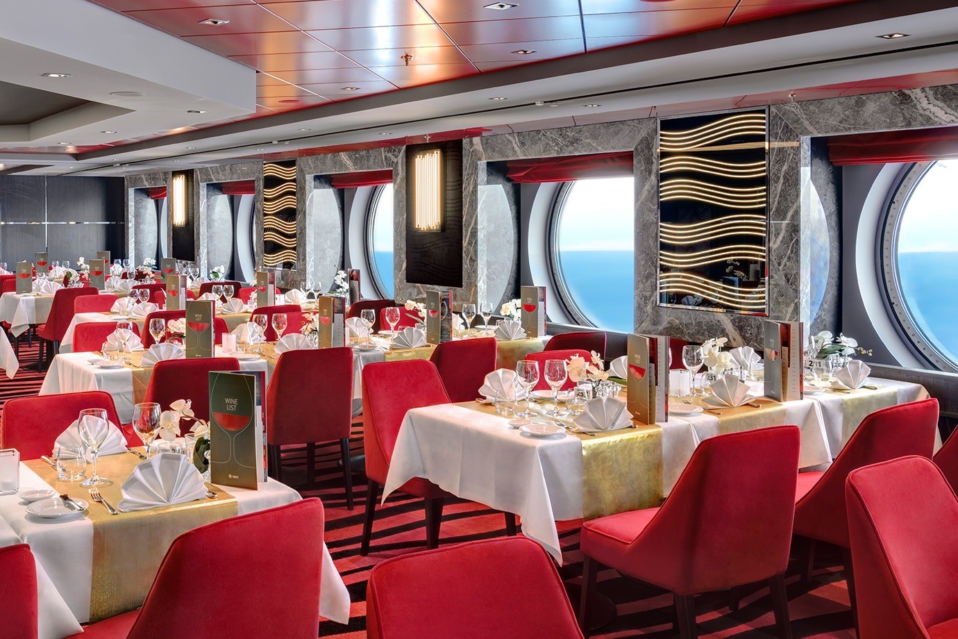 正式晚餐體驗 主餐廳是每日晚餐的核心用餐空間,提供每日更換的多道式料理,融合地中海風味與國際創意菜色,讓旅客在優雅環境中享受完整用餐節奏。主餐廳通常包含多種前菜、主菜與甜點選擇,適合全家與長輩共同用餐分享美好時光。