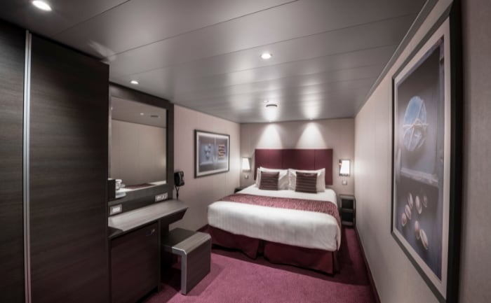 MSC 傳奇號(MSC Meraviglia)的內艙客房以實用與舒適為設計核心,是追求高 CP 值旅客的理想選擇。雖然沒有對外窗景,但空間規劃相當完善,配備舒適寢具、獨立衛浴、互動式電視、迷你吧與充足的收納空間,整體風格現代簡約又不失溫馨。良好的隔音與燈光設計,讓旅客能享有安靜、放鬆的休息品質,非常適合把時間花在船上設施與岸上行程、只需要一個舒適睡眠空間的旅客。