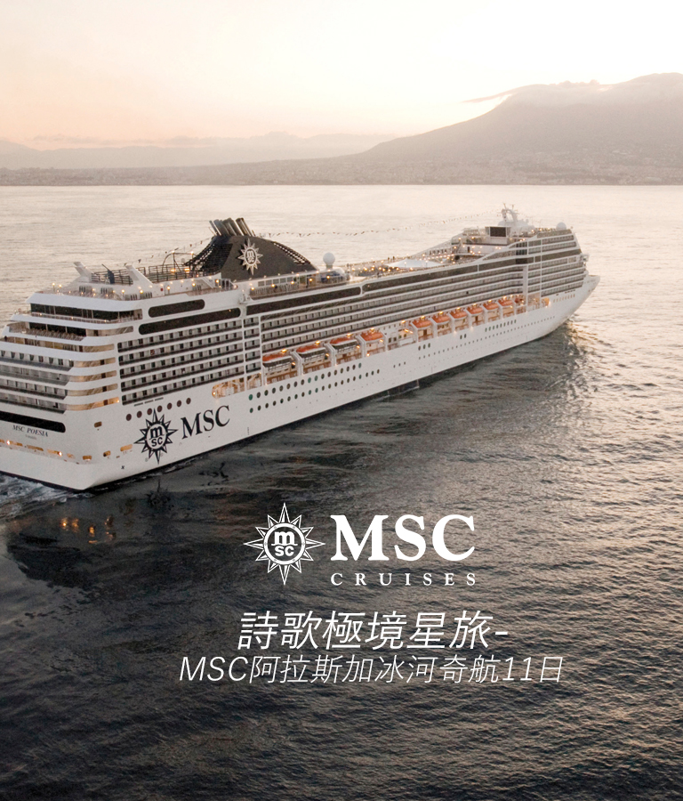 2026首度推出阿拉斯加季節航線,也標誌 MSC 在美國西岸第五個母港正式啟動。選用MSC典雅中型適合航行於狹窄的Inside Passage能夠更近距離親近冰河與峽灣景色。指定使用陽台艙不須出船艙就可盡賞冰川、極地動物。