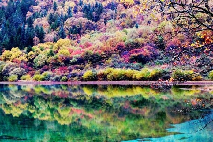其名稱源於同一水域中呈現鵝黃、墨綠、深藍、藏青等色彩交織的奇幻景觀,被譽為“九寨溝一絕”與“九寨精華”。