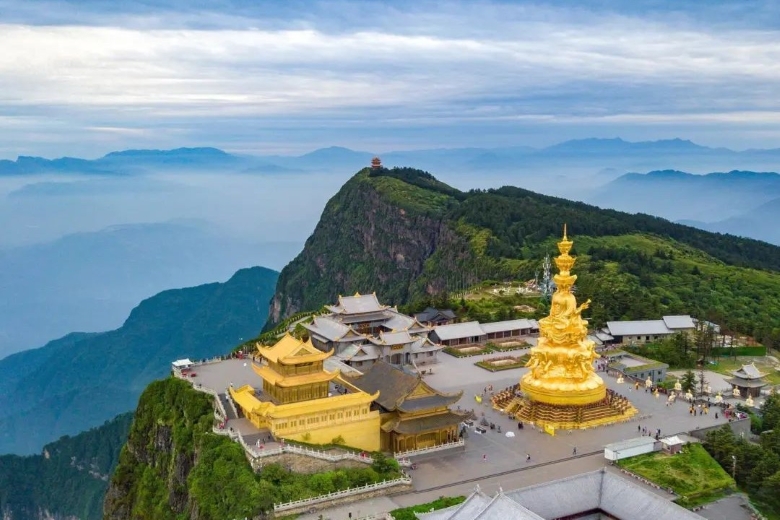 峨眉山金頂(海拔3077米)位於峨眉山主峰,是漢傳佛教四大名山之一的核心聖域,自東漢普光殿始建,至唐代成為佛教重要聖地,現存華藏寺建築群承載千年宗教脈絡。作為世界文化與自然雙遺產的組成部分,金頂以“日出、雲海、佛光、聖燈”四大奇觀聞名。