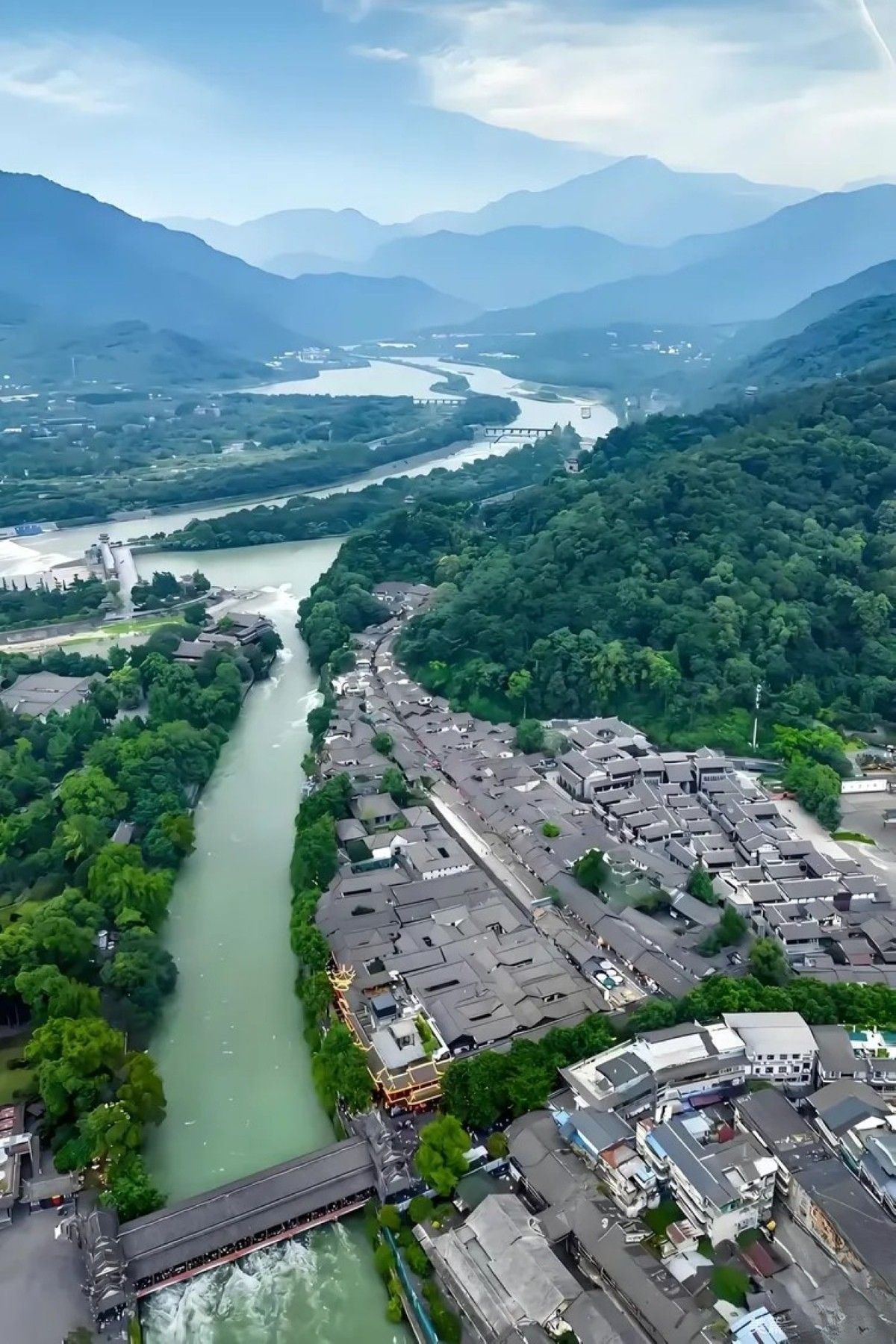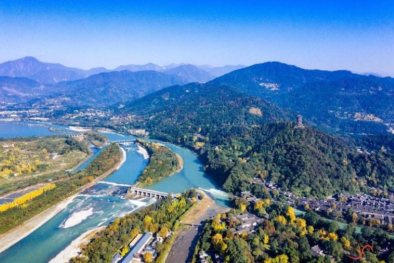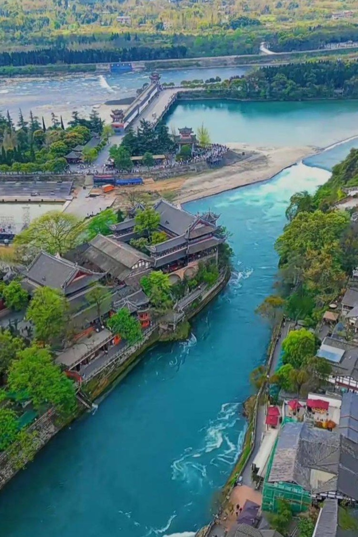 水韻千年都江堰,江流有序如翩然樂章,灌溉系統與青山相映,既有李冰治水心繫蒼生的智慧,亦有「半城山水半城綠」的盎然生機。