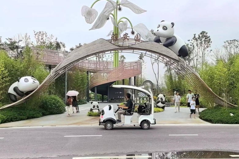 聞名世界的成都熊貓基地,總面積3570畝,特別安排電瓶車代步,節省一些腳力。基地內模擬大熊貓野外生態環境,設有熊貓產房、飼養區、科研中心及「熊貓別墅」等設施。