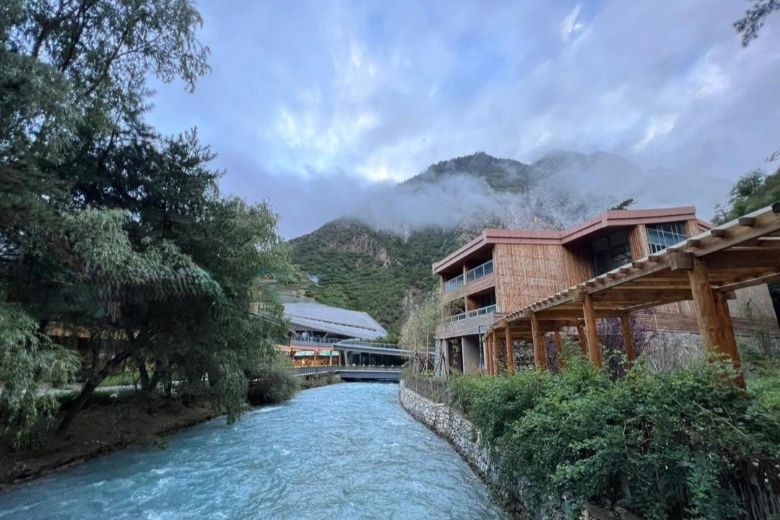90%以上的網路評價提及「景觀驚豔」、「服務細緻」、「硬體超乎預期」, 酒店坐落於九寨溝漳紮鎮中查溝入口,距九寨溝景區入口僅10公里。融合傳統與創新元素,將木質結構、藏式裝飾與現代智慧設備完美並存。