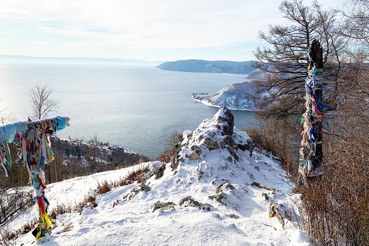 哈伯伊角自古以來便是布里亞特人心中的聖地,薩滿信仰認為此處是天地靈力交會之所。當地流傳著一段傳說:巨岩本是因嫉妒而受罰的女子所化,永遠凝視湖面,象徵著忠誠與懲戒。如今,岩壁上仍可見綁滿五彩祈願布條的木樁,為這片壯麗的自然景觀增添神秘色彩。