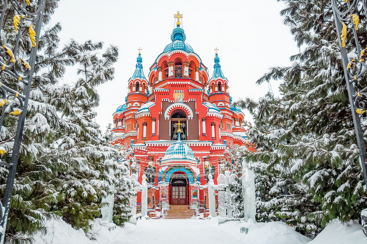 建於19世紀初,以紀念俄羅斯守護聖像「喀山聖母像」而得名。教堂以典型俄羅斯東正教建築風格為主,藍色圓頂與紅磚牆面形成鮮明對比,莊嚴華麗。其內部壁