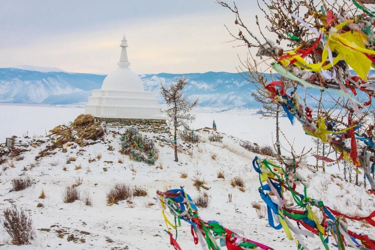 貝加爾湖中最神聖的地標之一,這座佛塔於2005年由蒙古與俄羅斯佛教僧侶共同建造,被視為淨化與和平的象徵。當地傳說,遊客若在佛塔周圍依順時針繞行三圈,並誠心許下願望,便能獲得實現與庇佑。登上佛塔所在的山頂,不僅能環顧湖光山色,還能感受到靜謐與靈性的氛圍。這裡結合湖光山色與宗教靈性,為旅程增添神秘與心靈力量。