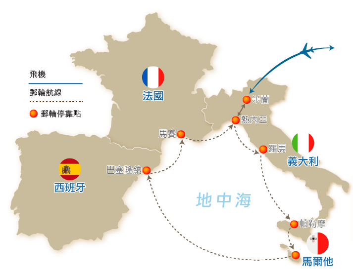 【歐元】地中海、北歐及波斯灣航線使用歐元。