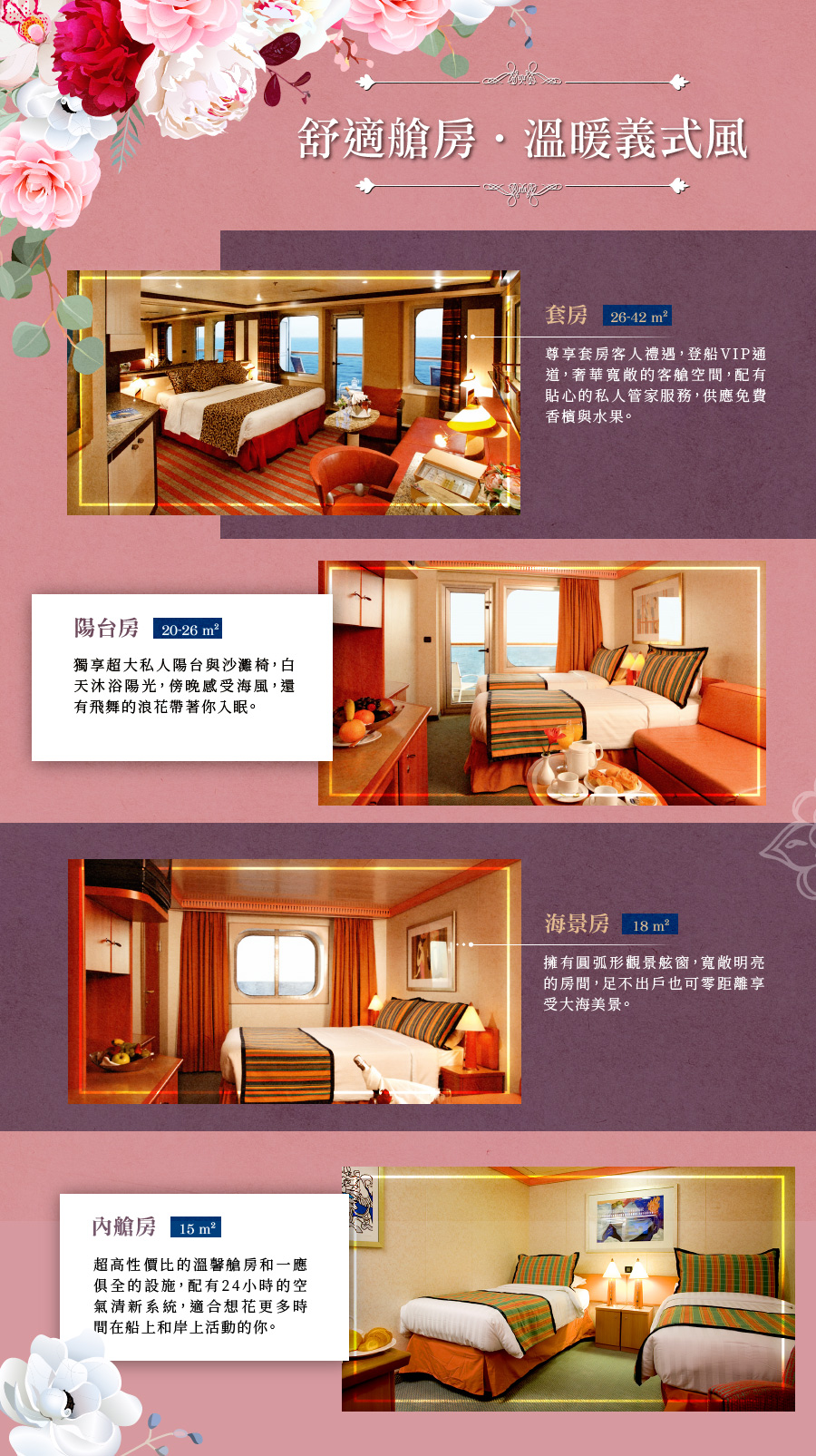 ◎嬰兒:以登船日為基準,嬰兒登船生日需滿6個月以上方可登船。