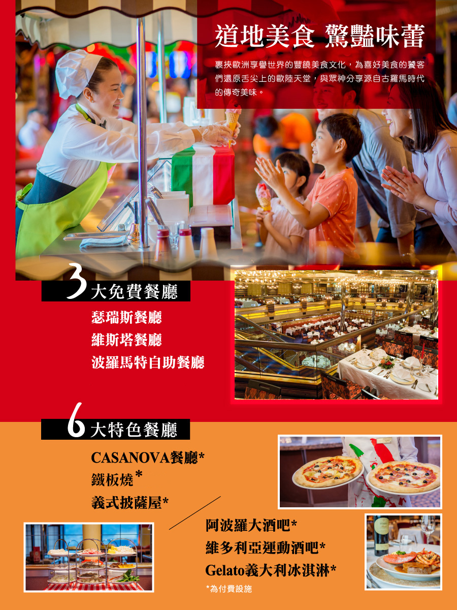 ●以上售價為遊輪船票費用,含遊輪靠港稅。