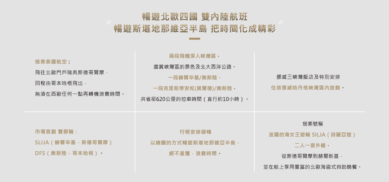 03.餐食分別安排於飛機上或陸地上餐廳使用。